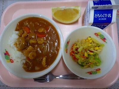 冬休みが終わり今日から学校です。初日は児童に人気のカレーにしました。
