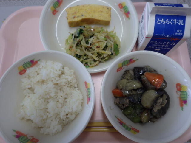 今日の鶏肉のラタトゥユがけには,6年生が収穫してくれた玉ねぎ,4年生が収穫してくれた茄子とピーマンが入っています。野菜のうまみがたっぷり出ていて本格的な味でした。