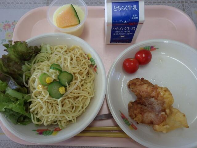 今日は選択メニューでした。ソーダシャーベットの方が人気がありました。今日みたいな暑い日にはピッタリです。児童も喜んでいました。
