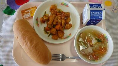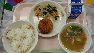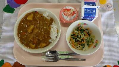 初日の給食はカレーです。残食も少なく,よく食べていました。