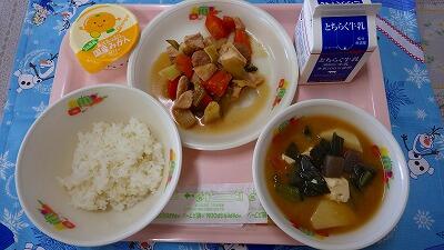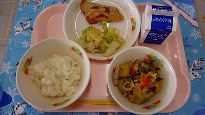 今日は宮っこランチの夏献立でした。十六穀ご飯は苦手な児童が多いようでした。大いちょう汁に入っているかまぼこは、調理員さんがいちょうの形に切ってくださいました。
