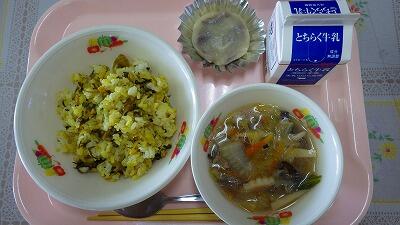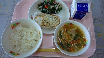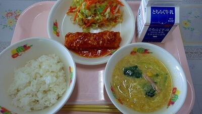 今日は「6年生が選ぶ好きな給食」1位の揚げパンです。そして,揚げパンは選択メニューでした。きな粉と抹茶ミルクの二つの味から選ぶことができます。抹茶ミルクはほろ苦いので,児童には人気がないかもしれないと思っていましたが,きな粉と同じくらいの割合でした。さっぱりしていておいしかったです。