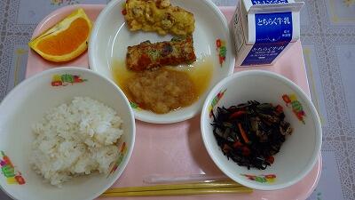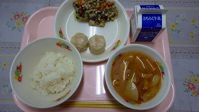 明日2月2日は「初午」なので,今日は初午献立にしました。栃木県の郷土料理である「しもつかれ」が苦手な児童も何人かいるようですが,給食の「しもつかれ」は食べやすい味付けになっているので,残食は少なかったです。