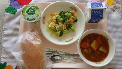 今日から1年生の給食が始まりました。初めての給食でしたが、とてもよく食べていました。