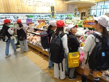 社会科の校外学習として学区内にあるヨークベニマルミライト一条店に行きました。