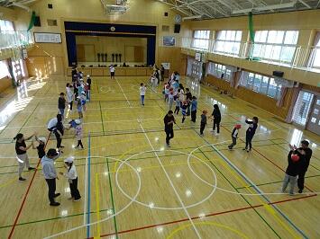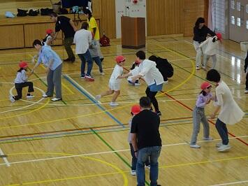 市内のスポーツクラブから講師をお招きして2学年部が親子活動を設けました。体育館で親子一緒に体を動かしたりスキンシップを図ったりと楽しいひと時を過ごしました。