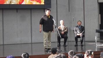 最後に来賓を代表してまちづくり推進委員会長から祝辞をいただき、スクリーンで来賓の皆様を紹介させていただきました。