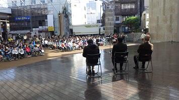 7日(金)当日の会場となるオリオンスクエアにて練習を行いました。実際の舞台でリハーサルすることで場の雰囲気にも少しは慣れたと思います。