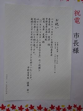 なお、市長から祝電をいただきました。御礼申し上げます。