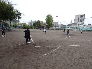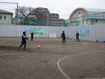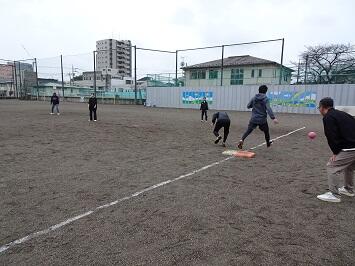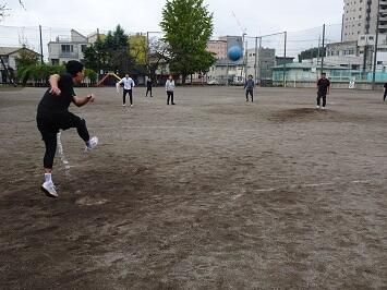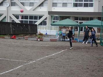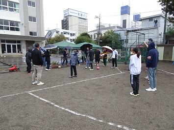 以下はキックベールボールの模様の一部を紹介します。開始時刻の時は、若干小雨が降っていましたが、回を重ねるごとに天候は回復し、ハッスルプレーと白熱した試合が続きました。なかには、勝敗をじゃんけんで決する場面も見られました。男性、女性に限らずボールを遠くまで飛ばしてチームに貢献する姿も多く見られました。
