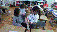 誰もがおなかについている「へそ」について「おへそのひみつをさぐってみよう」というめあてのもと,知っていることを発表した後,おなかの中で大事に育てられてきたことを押さえながら,おへその役割について養護教諭のお話を聞きました。最後に実際の赤ちゃんと同じ重さの人形を抱っこし,座っていない首に気を付けながら,落とさないようにやさしく抱っこする体験を通して,「自分たちも大切に育てられてきたんだなあ」と実感することができました。
