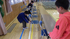B日課短縮授業で,1年生から3年生と6年生が給食を食べて下校した後,来年度高学年としてコンビを組む4・5年生が,卒業式の準備をしてくれました。