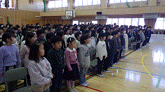 2校時に2回目の全体練習が行われました。今日は,体育館に椅子を入れ,起立・礼・着席の基本動作の練習も加えて,別れのことば・国歌・校歌・式歌の練習をしました。特に国歌と校歌の練習は,本番同様にピアノの伴奏に合わせて練習しました。来週の水曜日(12日)は,早くも予行練習になります。子供たちの気持ちも少しずつ盛り上がってきています。