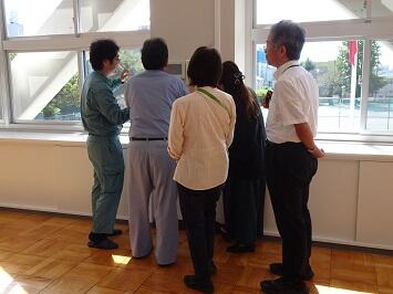 また、その後、真新しい職員室にてインターフォンの使い方について説明を受けました。その後、教職員も1日の午後にその扱い方についてミニ研修を行いました。