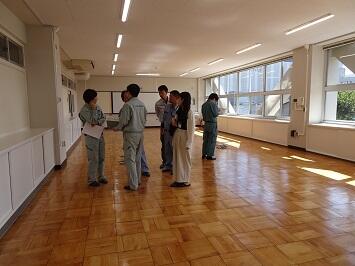 南校舎の改修工事が終わりました。そこで、市役所関係職員、校舎改修工事関係者、学校代表者が一堂に会して鍵の引渡しがありました。これで10月1日から各部屋に入り、引越しの準備ができることになりました。