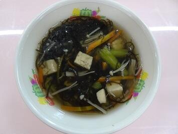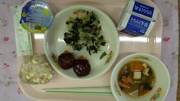 <献立>牛乳、肉団子、いそべあげ、けんちん汁、月見ゼリー