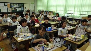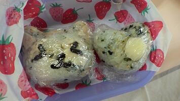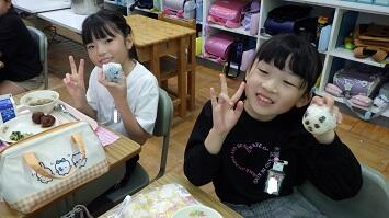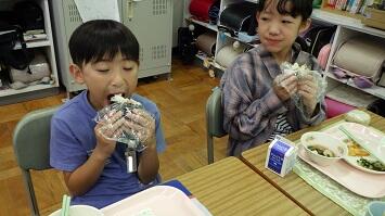 今年度はじめてのおにぎりの日でした。児童は食べられるだけの量をご飯をおにぎりにして持参しました。給食の時間は主食以外に提供したおかずなどといっしょにおにぎりをほうばっていました。