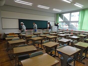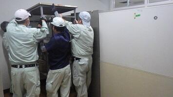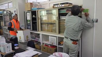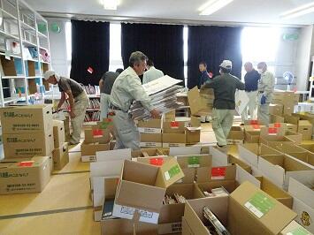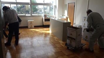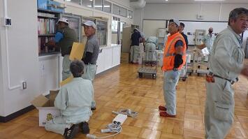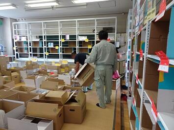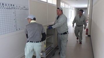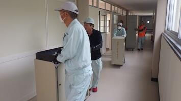 本校勤務の学校業務機動班をはじめ他校勤務の方含めた11名が校長室、職員室、保健室、印刷室等の荷物の運び出しと設置の作業をしてくださいました。本格的な引越し作業は指定業者によって11日に行われますが、今回細かい書類等を動かしてくださり、大変助かりました。