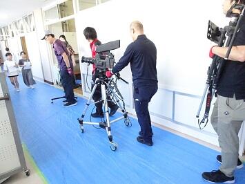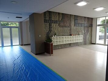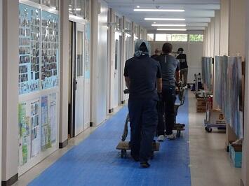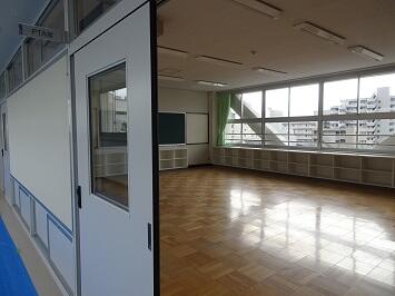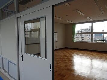 南校舎の改修工事が完了し、10月1日から各部屋へ入ることができるようになりました。11日には業者による本格的な引越し作業を行います。その前に、各階の一部の様子をご覧いただきます。ただし、引越し直前に行う作業の関係者が仕事をしていました。