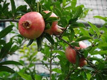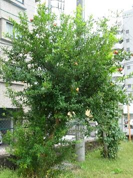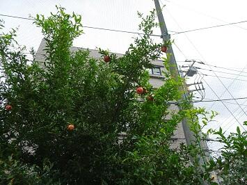 校庭の南方東角にザクロの木があります。実は1学期後半から薄オレンジ色の実がなっているのを発見していましたが、実の色が随分赤くなりました。