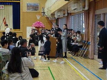 そして、いよいよ担当、担任等の発表です。児童はわくわくしていいたと思いますが、一人一人の教職員を紹介すると大きな拍手をしてくれました。