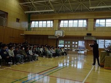 最後に、児童指導主任から児童が楽しく安心して学校で過ごすことができるために心掛けることを話しました。