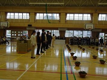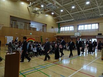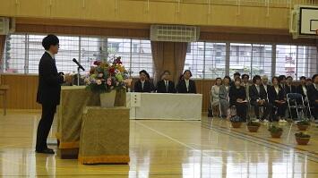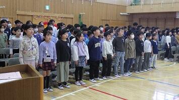 全児童及び教職員が体育館に集まり、恒例の式を行いました。