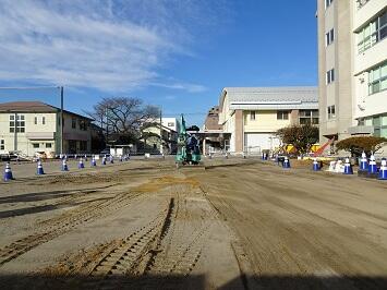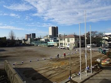校舎改修工事が最終段階に入っていますが、新年から職員駐車場が従来の箇所に移動しました。それに伴い、校舎南側のフェンスが取り払われました。