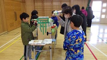 そして、児童が考え工夫して作った出店で一緒に遊びました。最後にプレゼント交換を行い終わりました。