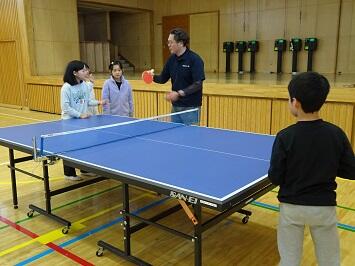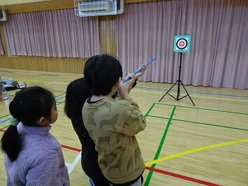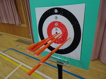 内容はスポーツ吹き矢と卓球です。吹き矢は小学生には難しいと思っていましたが、大人の支援で結構簡単にそして楽しくできていました。