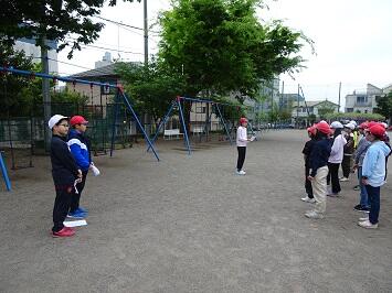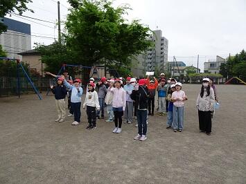 フォークダンス「マイム マイム」を練習していました。もしかすると、21日から参加する冒険活動教室の一場面でやるかもしれません。児童は担任から踊り方の手ほどきを受けながら笑顔で和気あいあい体を動かしていました。