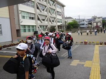 この日は、教員による登校指導の日でした。普段どおり各登校班ともしっかり1列になって歩いていました。また、保護者の中には同伴して学校近くまであるいは門まで見守ってくださる方がいました。大変ありがたく思います。