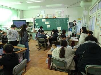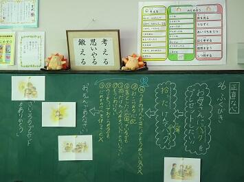 次に、朝の会から1校時にかけて各学級をのぞくと落ち着いて生活している様子が伺えました。健康観察をして、休み中の課題を提出している児童、担任と新年のあいさつをして今年を見据えている学級、早速授業に臨み集中している学級と様々でした。