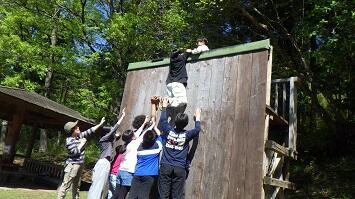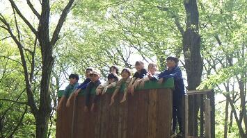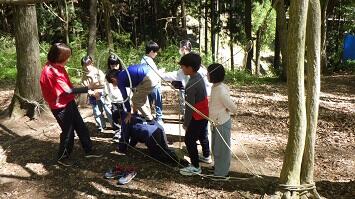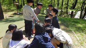 冒険活動教室初日から大きな課題の1つに挙げられる「イニシアティブゲーム」の幕開けです。毎年、この活動で多くのドラマが繰り広げられます。絶対「あきらめない!」という強い気持ちを持ちながら取り組みました。
