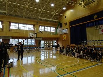 全児童及び教職員が体育館に集まり、恒例の式を行いました。