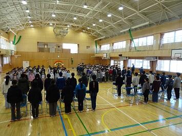 来週19日に卒業式を迎えますが、ここまで練習してきた成果を確認する予行練習をしました。卒業する6年生はもちろんですが、1年生から5年生も立派な態度で感心しました。