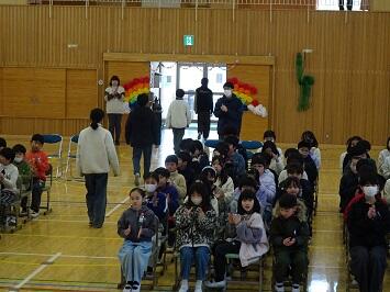 全校児童が体育館に集まり、初めてとなる卒業式の練習を行いました。