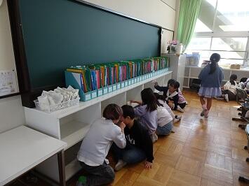 学校業務機動班の本校勤務日、高学年のサブとなる教室にカーテンを付けました。男女分かれて更衣する際に配慮するためです。他の学年につきましても、少しずつ対策をしていきます。