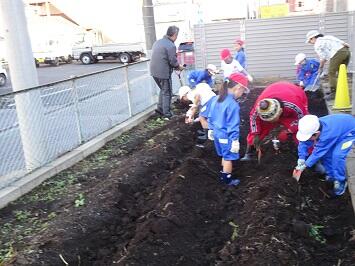 収穫作業はは、ボランティアの方にご協力いただきました。お忙しい中、児童のためにお力添えいただきましてありがとうございました。