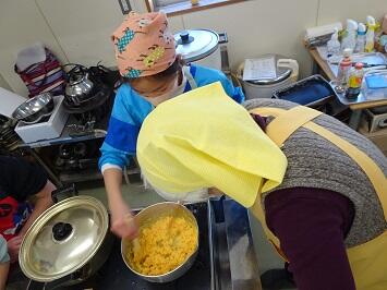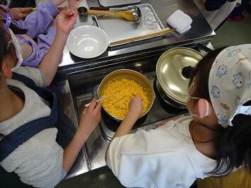 2つの班に分かれて先生の指示をよく聞きながら丁寧に調理していました。できばえは上々といったところしょう。
