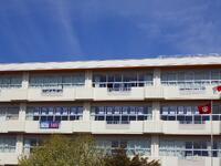 完成した横断幕は、学校東側の正門横のフェンスに掲示されています。本校の新たな歴史の始まりを告げるシンボルとして、ご来校の際はぜひご覧ください。