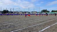 練習初日にもかかわらず、子どもたちは先生の話を真剣に聞き、少しずつ動きを合わせていこうと頑張っています。青空の下、力一杯走ったり、友達と協力したりする姿は、本番での活躍を予感させます。