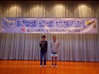 10月10日に行われた第1学期終業式において、スローガンとシンボルマークを考案した二人の児童が紹介されました。