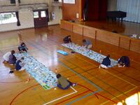 創立40周年を記念した事業の一環として、全校児童303名が描いた「自画像」を昇降口に展示する準備を進めています。本日は、この自画像掲示プロジェクトを支えてくださる保護者ボランティアの皆様にお集まりいただき、作業を行っていただきました。