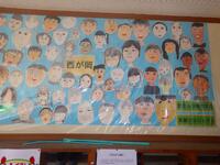 全校児童303人の自画像が、登校してくる子供たちや来校する皆さんを笑顔で迎えています。