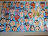 創立40周年記念事業として取り組んできました「笑顔プロジェクト」が、ついに完成し、昇降口の壁いっぱいに掲示されました。
