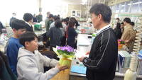 企画委員長による「感謝の言葉」に続き、全校児童で心を込めて書いたお手紙と、色鮮やかなお花を贈呈しました 。