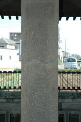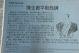 | 碑の高さは1.3m、幅、厚さはとも30cmで、正面には「勅旌忠節蒲生君平里」と刻まれています。 |