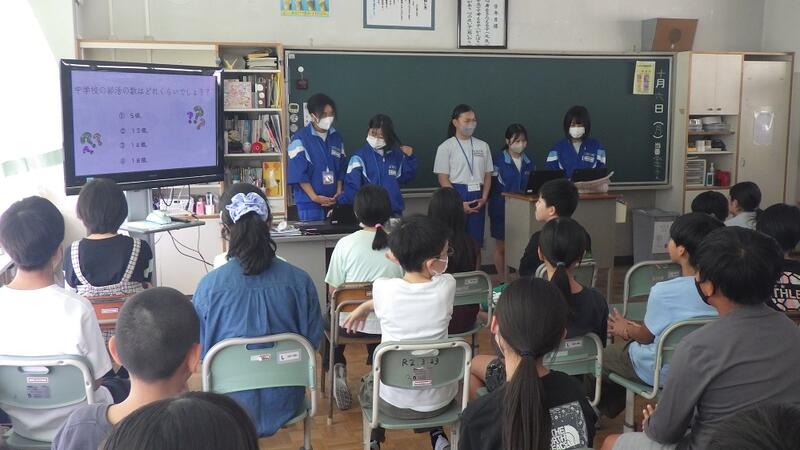 6年生に中学校の様子をクイズ方式で説明してくれました。