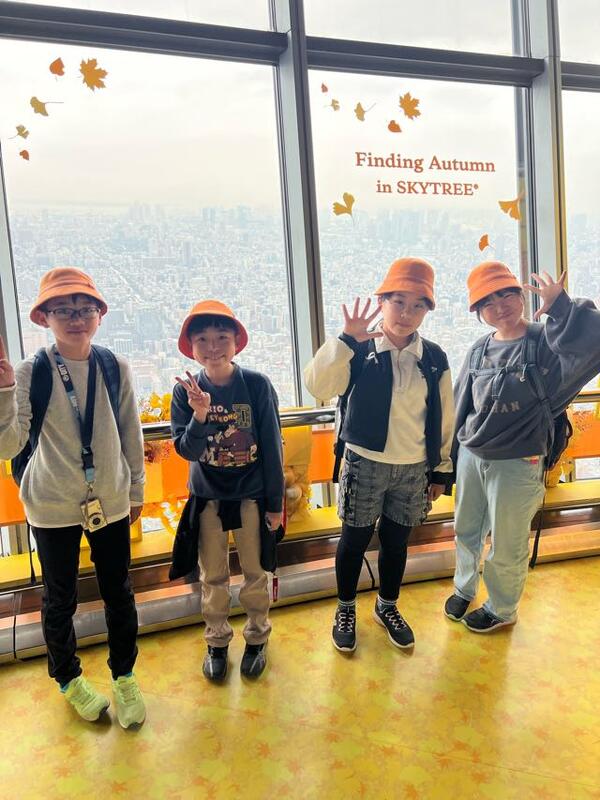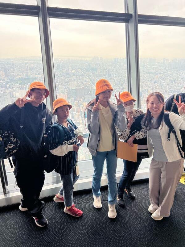 お昼を食べて、最後の見学地スカイツリーに到着、あっという間に350mの天望デッキへ